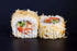 łosoś, ogórek, papryka, sos kobe, wiórki tuńczyka